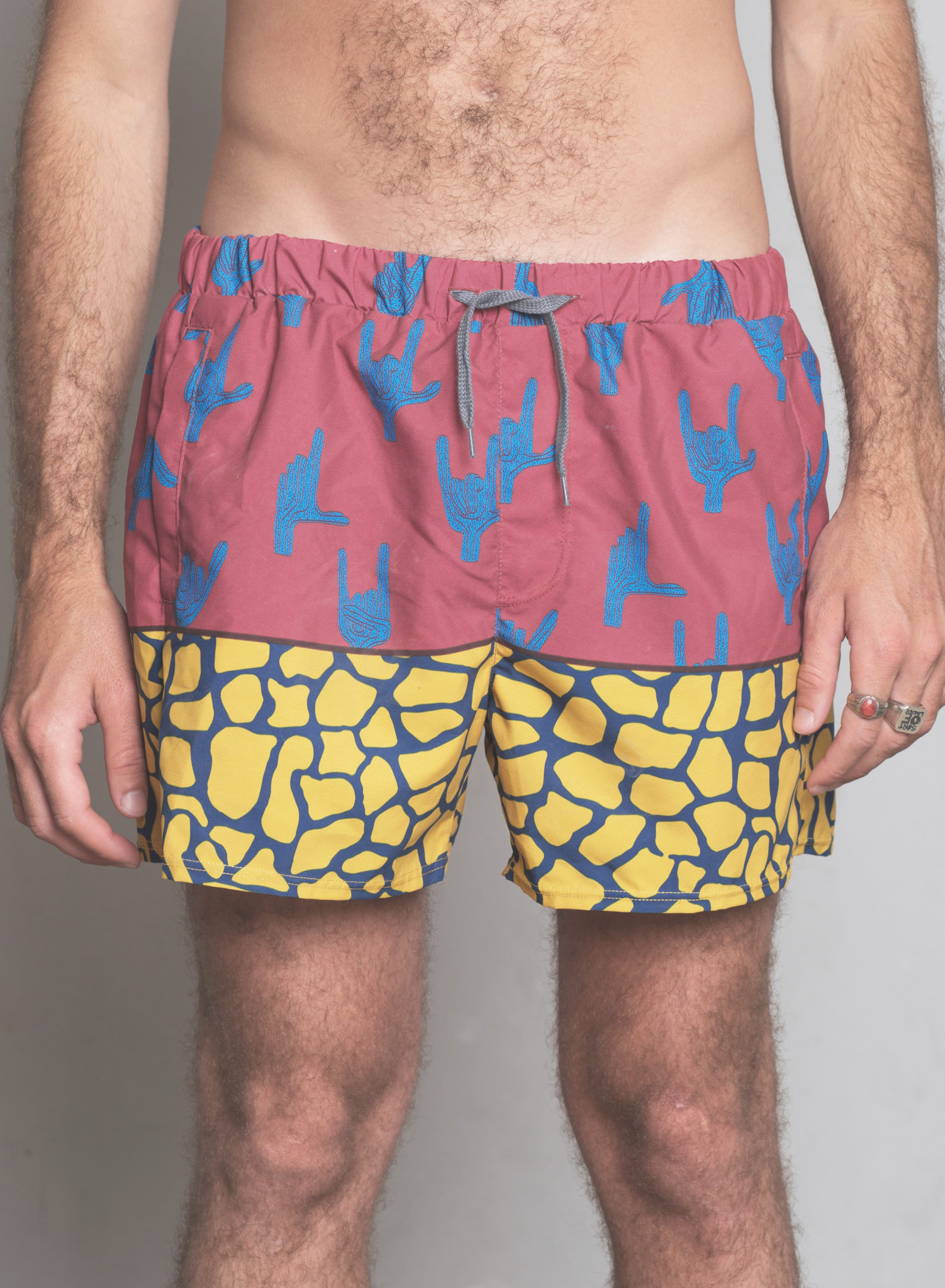 Elastico in vita, retina interna e tre tasche, 100% poliestere italiano ad asciugatura rapida.